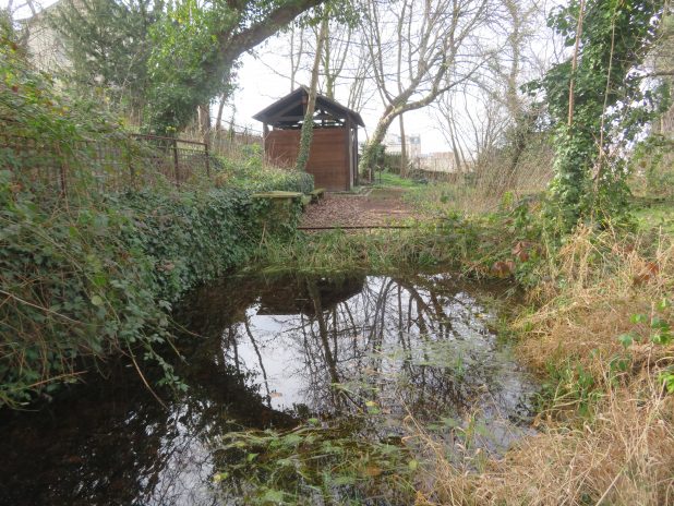 Mare dans laquelle se reproduisent des tritons, au parc des Chanteraines, 92.