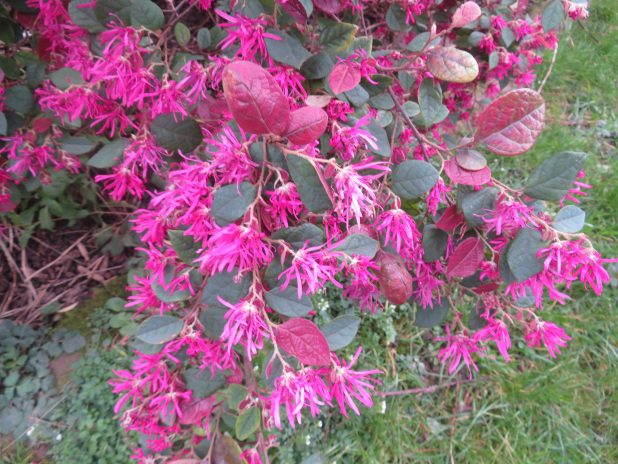 Loropetalum chinense à fleurs roses, au parc de Belleville, 20e.
