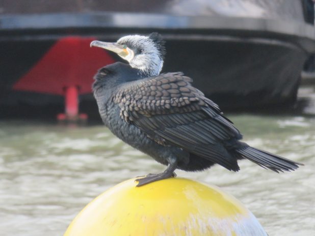 Grand cormoran en plumage nuptial, sur le bassin de la Villette, 19e.