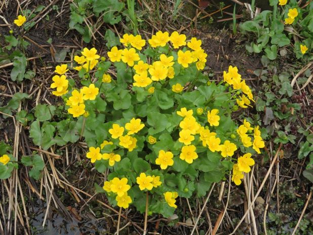 Populage, Caltha palustris, dans le canal du jardin d’Eole, 18e.