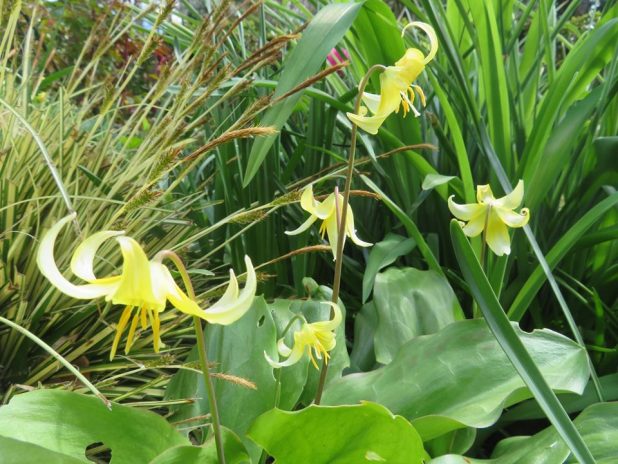 Erythronium ‘ Pagoda ‘, au jardin des Présentateurs du parc de Bagatelle, 16e.