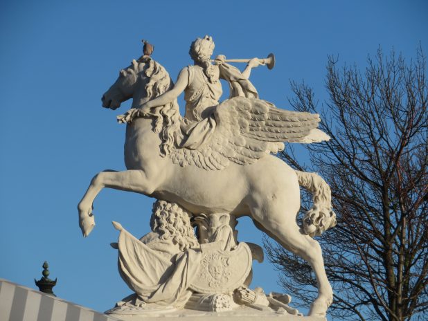 La Renommée montée sur Pégase », œuvre d’Antoine Coysevox ,1640-1720, à l’entrée du jardin des Tuileries, côté place de la Concorde, 1er.