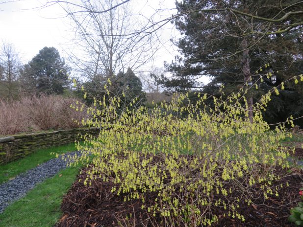 Corylopsis pauciflora en fleurs à l’arboretum de la Vallée aux Loups, 92.
