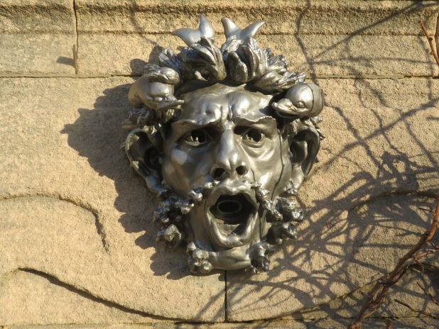Ancien mascaron des fontaines du jardin du Trocadéro, sorti des ateliers d’Auguste Rodin et désormais visible ( avec 13 autres ) dans le jardin des serres d’Auteuil, 16e.