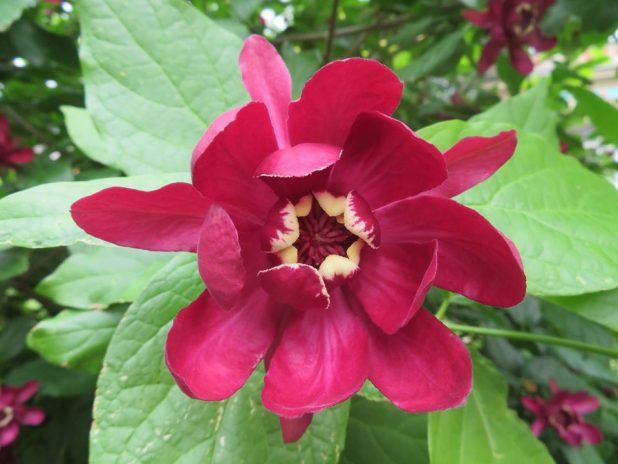 Calycanthus ‘ Aphrodite ‘, près de l’ancien Château des Montesquiou-Dartagnan, devenu Mairie du Plessis Robinson, 92.