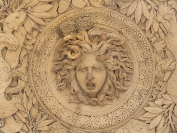 Nids d’hirondelles de fenêtre dans la chevelure de Méduse, au musée du Louvre, près du jardin des Tuileries, 1er.