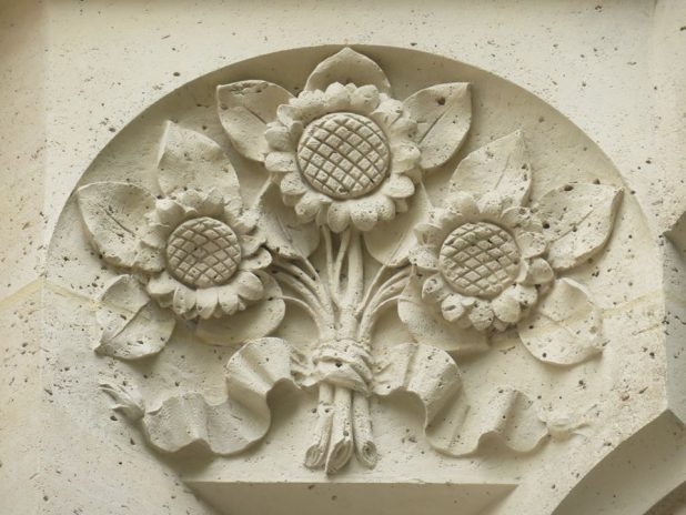 Bouquet de tournesols sur un façade d’immeuble dans le quartier de Plaisance, 14e.