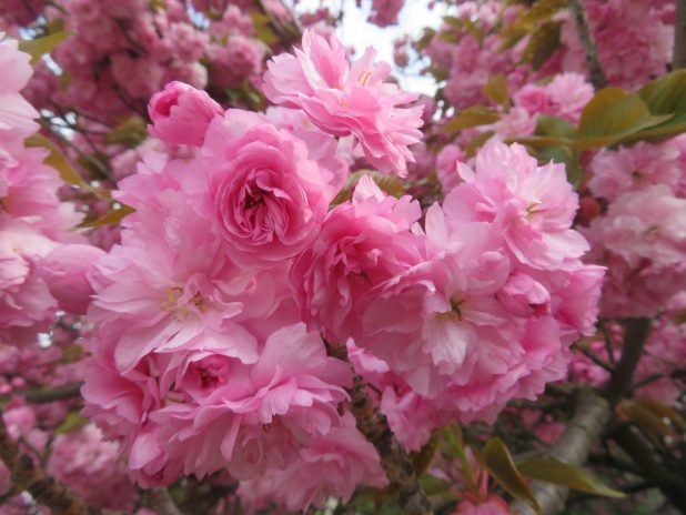 Bouquet de fleurs de cerisier japonais, au jardin partagé Ecobox, quartier de la Chapelle, 18e.