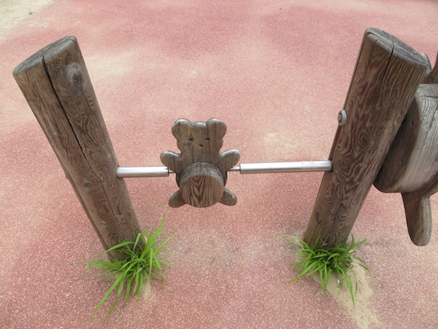 Ours, flanqué de deux Carex pendula, dans le square Alain Bashung, quartier de la Goutte d’Or, 18e.