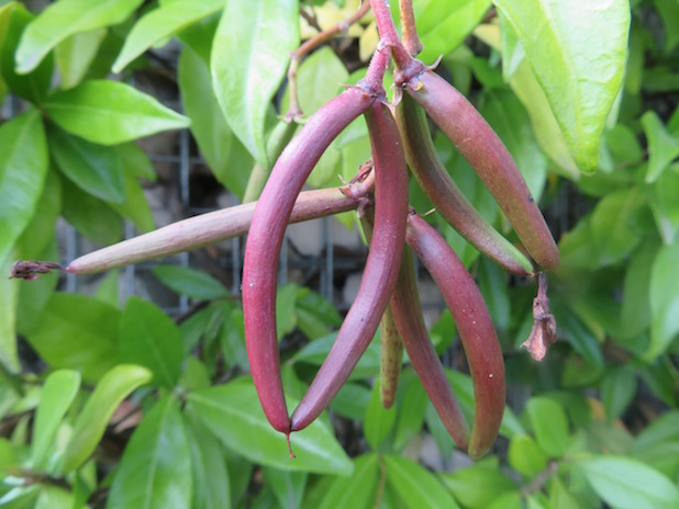 Fruits de Trachaelospermum jasminoides au parc du Chemin de l’île, 92.