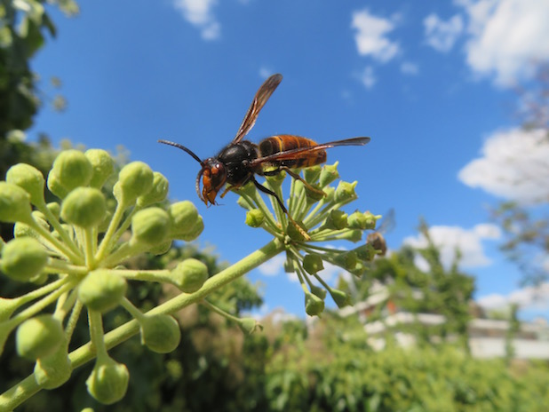 Frelon asiatique se délectant de nectar de lierre, à la toute fin de la coulée verte Renée Dumont, 12e.