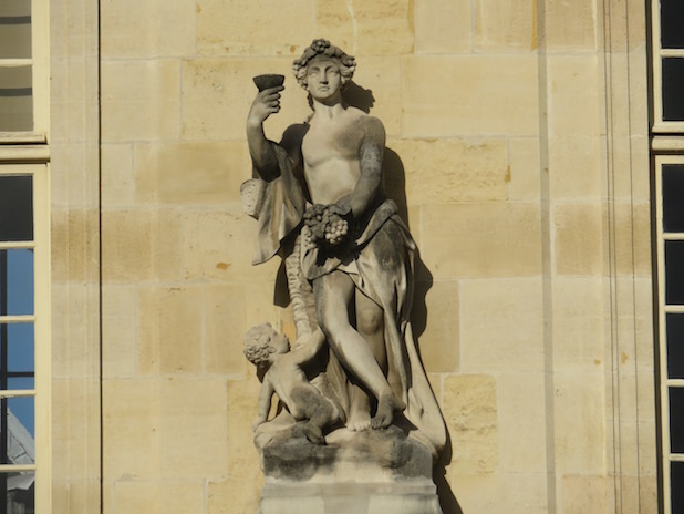 Bacchus semble nous dire » à votre Santé « , sur la façade de l’hôtel de Soubise, quartier du Marais, 3e.