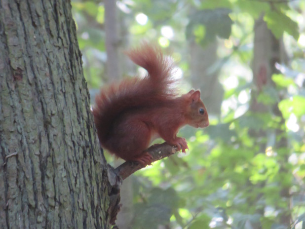 Ecureuil roux aux aguets au parc de la Poudrerie, 93.