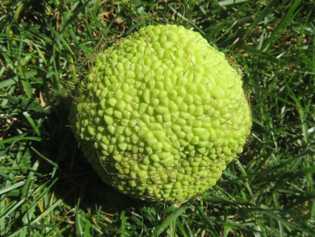 Orange des Osages tombé au sol au jardin du Luxembourg, 6e.
