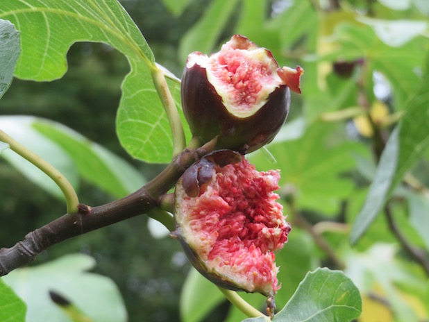 Figues croquées par des perruches à collier, à l’arboretum de la Vallée au Loups, 92.