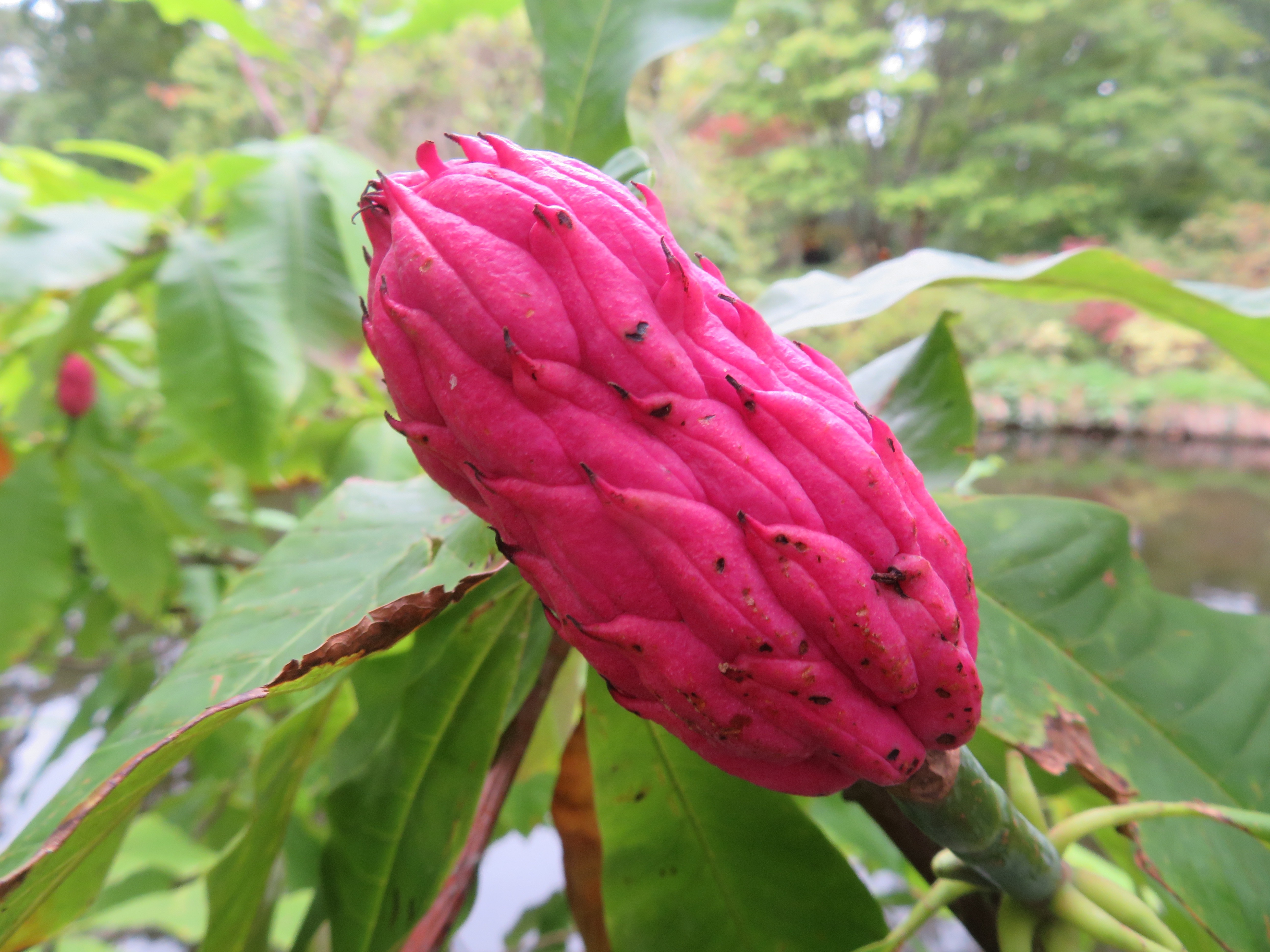Fruit de Magnolia tripetala à l’arboretum de la Vallée aux Loups, 92.