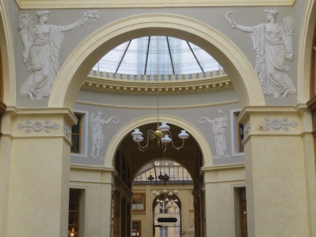 Galerie Vivienne, inaugurée en 1826 et fraîchement rénovée, sur le parcours de la balade » passages couverts de l’ouest « .