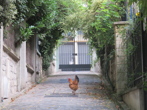 Poule en goguette dans la Villa Poissonnière, quartier de la Goutte d’Or, 18e.