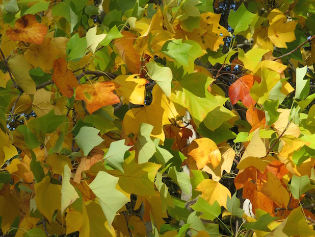 Cinquante nuances d’or sur un tulipier de Virginie à l’arboretum de la Vallée aux Loups, 92.