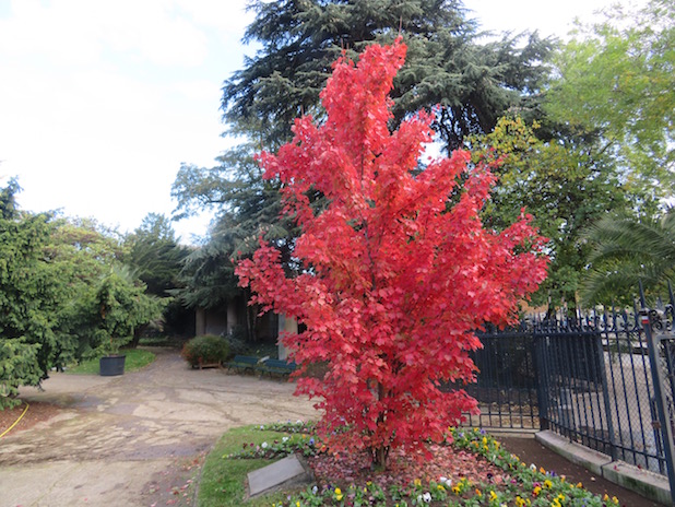 Erable rouge américain à l’entrée du square des Poètes, sur le chemin des serres d’Auteuil, 16e.