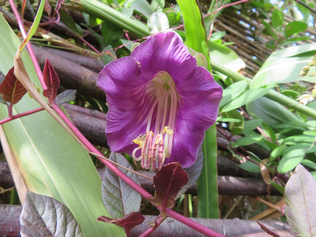 Cobée scandens dans un jardin éphémère créé par les étudiants, à l‘école du Breuil, 12e.