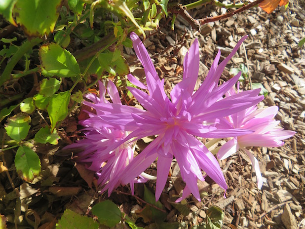 Colchique double ‘ waterlily ‘, en pied d’arbre au jardin d’Eole, 18e.