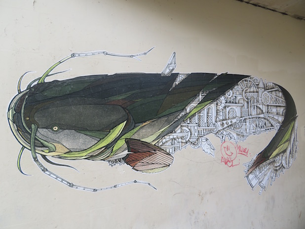 Beau poisson chat près du bassin de la Villette, à la fin de la Promenade urbaine, 19e.