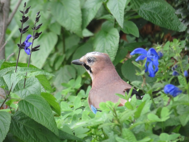 Geai des chênes parmi les sauges au parc de st Cloud, 92.