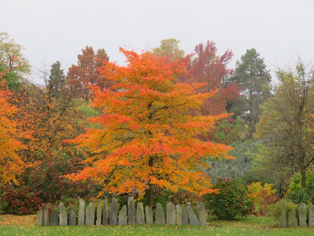 Erable rougeoyant sur l’île à l’arboretum de la Vallée aux Loups, 92.