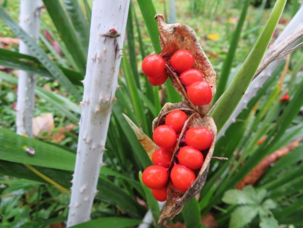 Graines d’iris gigot et tiges de ronce du Tibet au jardin des Tuileries, 1er.