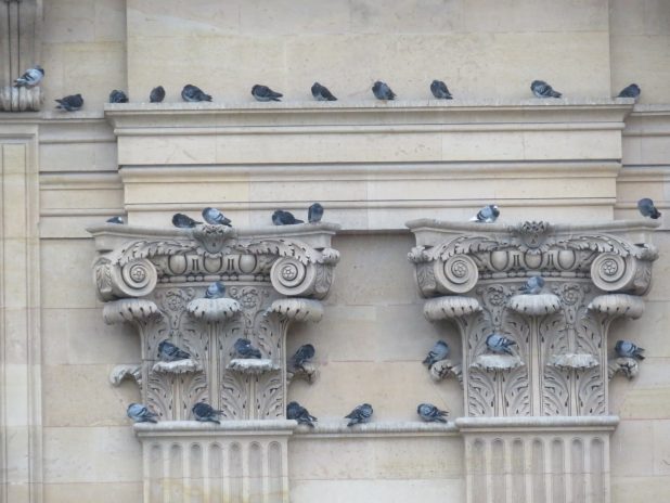 Repos des pigeons sur l’aile Richelieu du palais du Louvres, 1er.