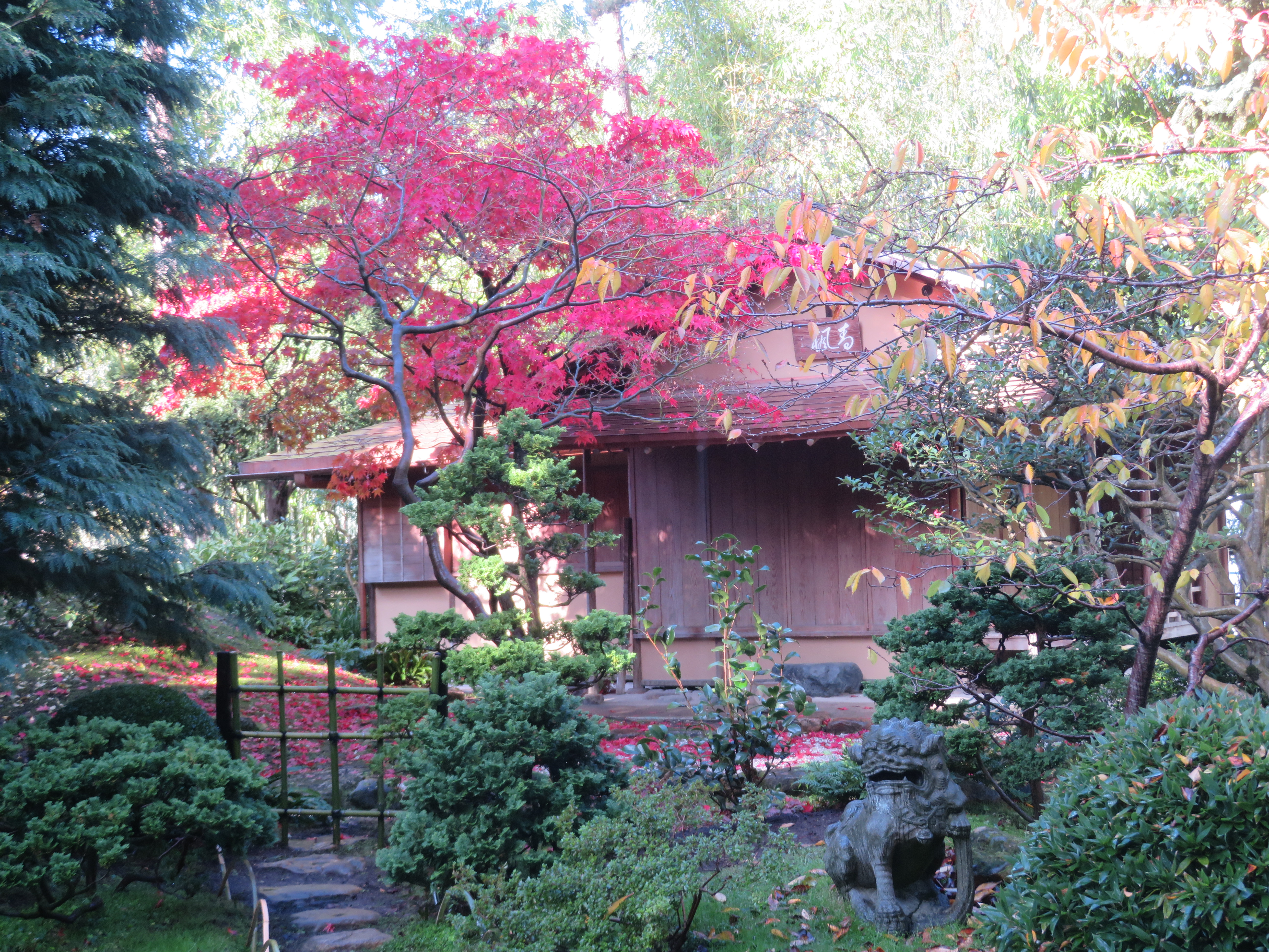 Erable en feu au dessus de la maison de thé, au jardin Albert Kahn, 92.