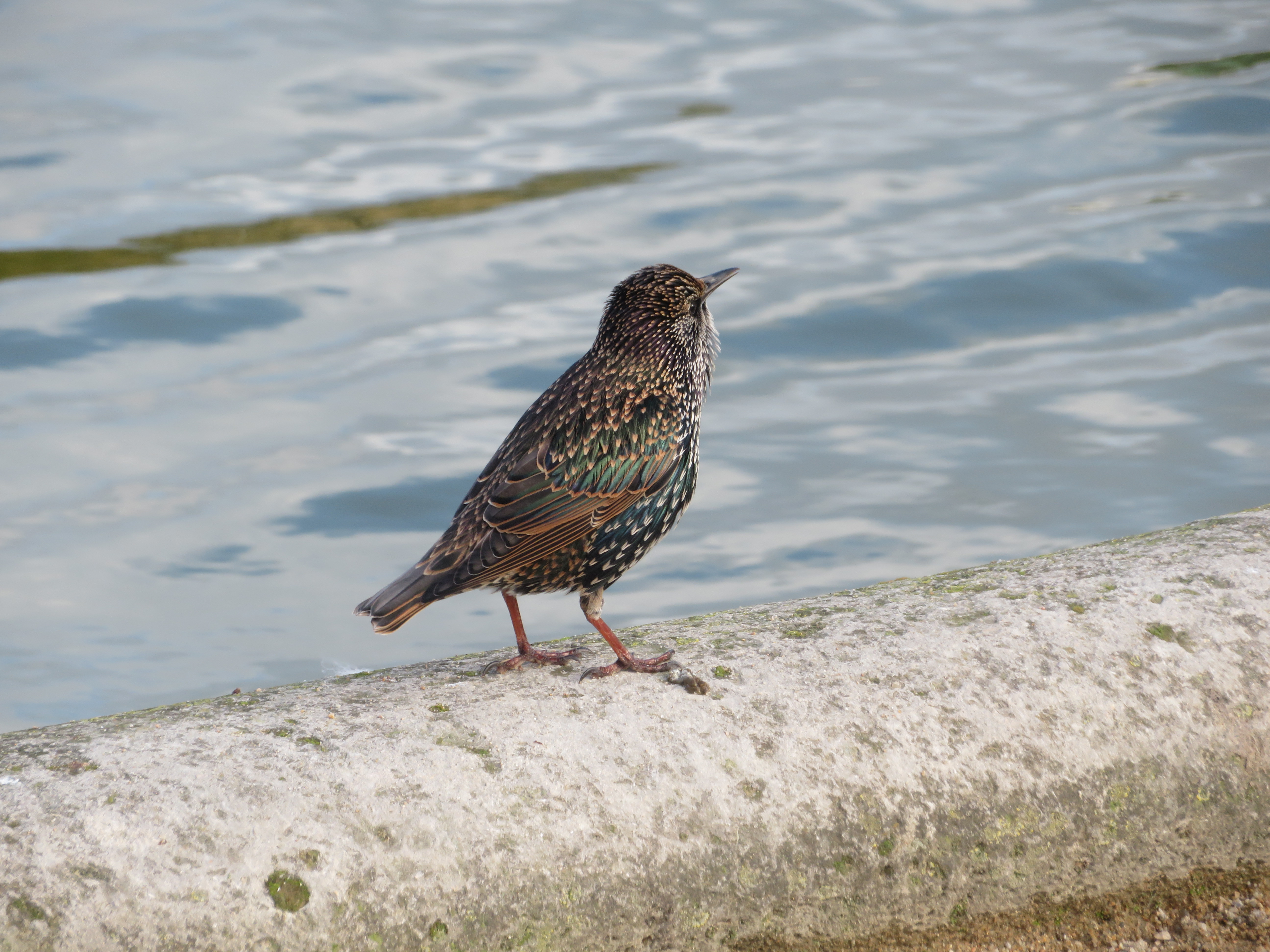 Joli étourneau au bord d’un bassin du parc des Tuileries, 1er.