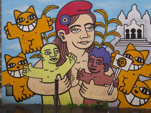 Marianne et ses enfants par Monsieur Chat dans le quartier de la Goutte d’Or, 18e.