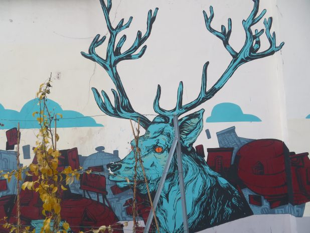 Beau cerf des murs près de la place des Fêtes, quartier de Belleville, 20e.