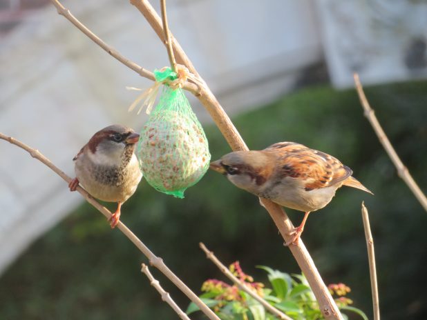 Moineaux domestiques, au restaurant dans le parc Monceau, 17e.