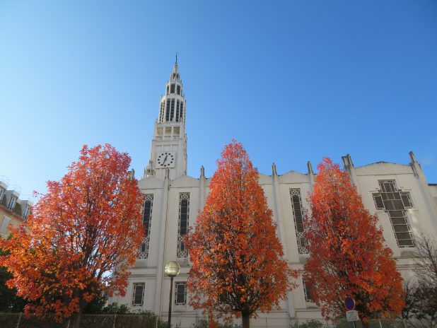 Pommiers fastigiés, Malus trilobata, devant l’église st Jean Bosco, dans le quartier de Charonne, 20e.