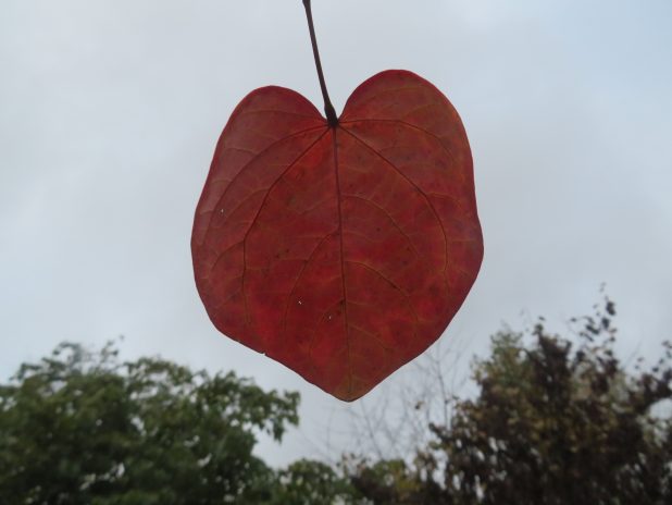 Feuille cordiforme de Cercis du Canada dans le square Léon, quartier de la Goutte d’Or, 18e.