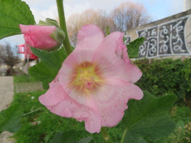 Vaillante rose trémière, près du canal st Denis, dans le parc de la Villette, 19e.