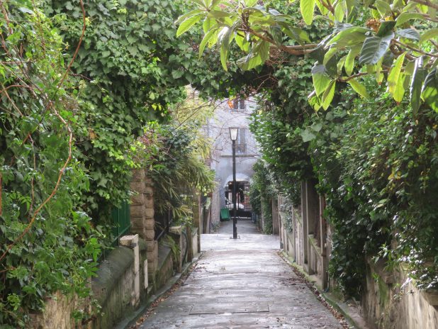 Loup dans le jardin des Rosiers, quartier du Marais, 4e.
