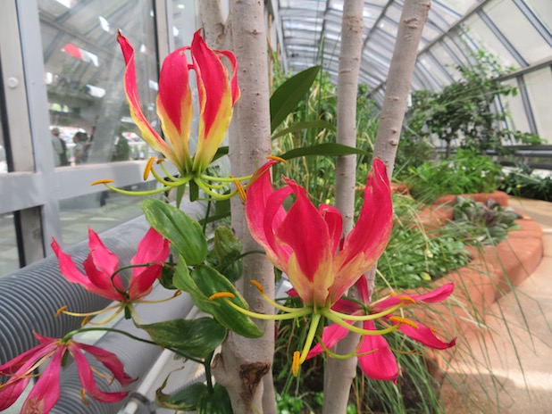 Gloriosa dans la serre contemporaine dédiée à l’Afrique au jardin d’Auteuil, 16e.