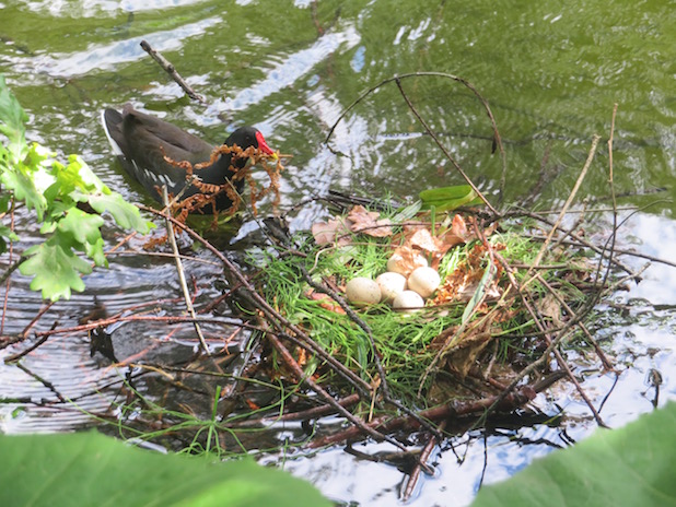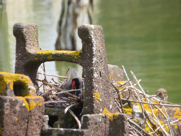 Poule d’eau consolidant son nid à l’arboretum de la Vallée aux Loups, 92.