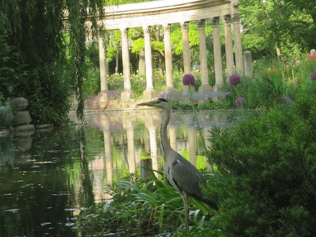 Héron cendré près de la naumachie du parc Monceau, 17e.