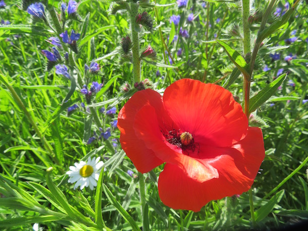 Coquelicot, vipérine et pâquerette au parc de la Vallée aux Loups, 92.