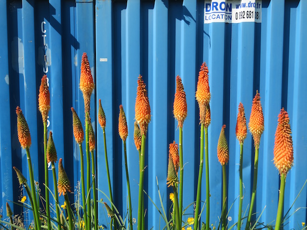 Belle touffe de Kniphofia uvaria au jardin Martin Luther King, 17e.