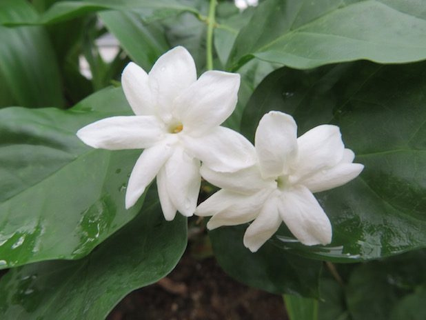 Jasmin sambac dans la serre contemporaine dédiée à l’Asie, au jardin d’Auteuil, 16e.