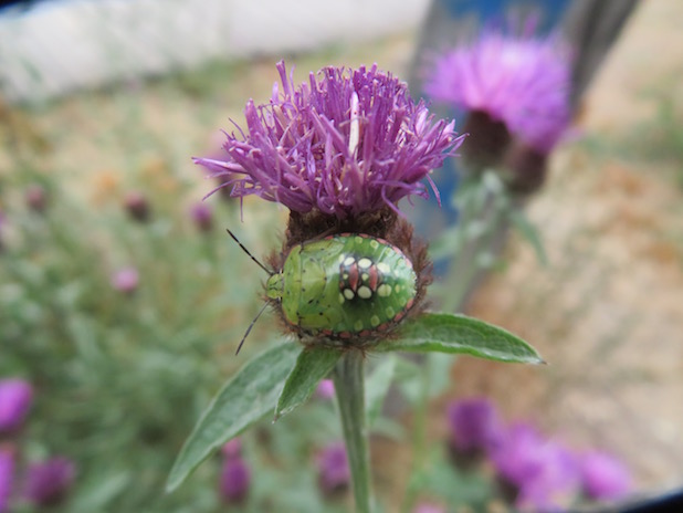 Larve de punaise, Nezara viridula, sur la petite ceinture du 15e.