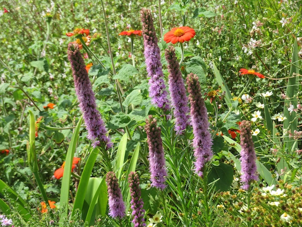 Liatris spicata dans un massif de plantes vivaces au jardin du Ranelagh, sur le parcours de la boucle verte du 16e.