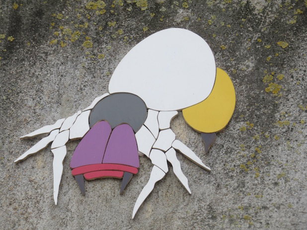 Space bug posé sur un mur du quartier de Belleville, 20e.