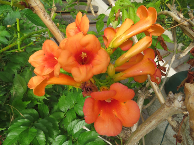 Bignone ombrageant un escalier du jardin de Belleville, 20e.